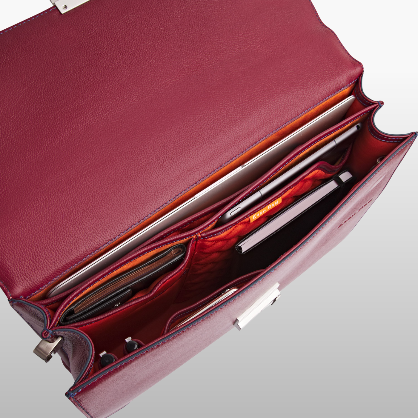 The Amsterdam briefcase features a dual-zip luggage sleeve, allowing you to effortlessly secure it to your trolley