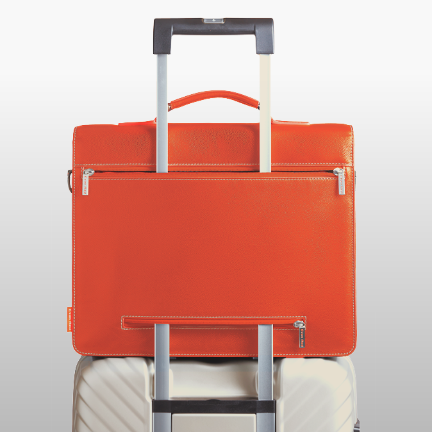 The Amsterdam briefcase features a dual-zip luggage sleeve, allowing you to effortlessly secure it to your trolley