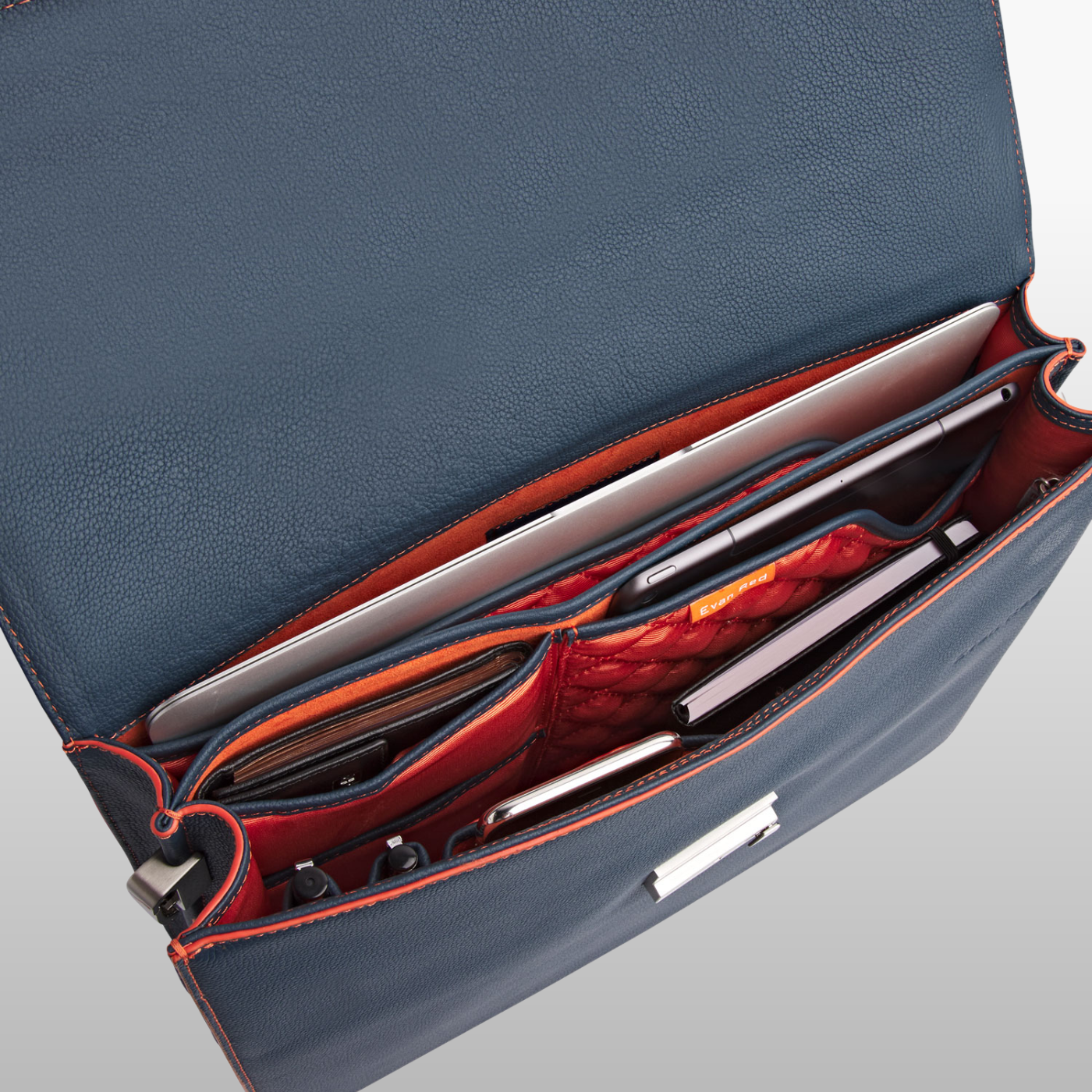 The Amsterdam briefcase features a dual-zip luggage sleeve, allowing you to effortlessly secure it to your trolley